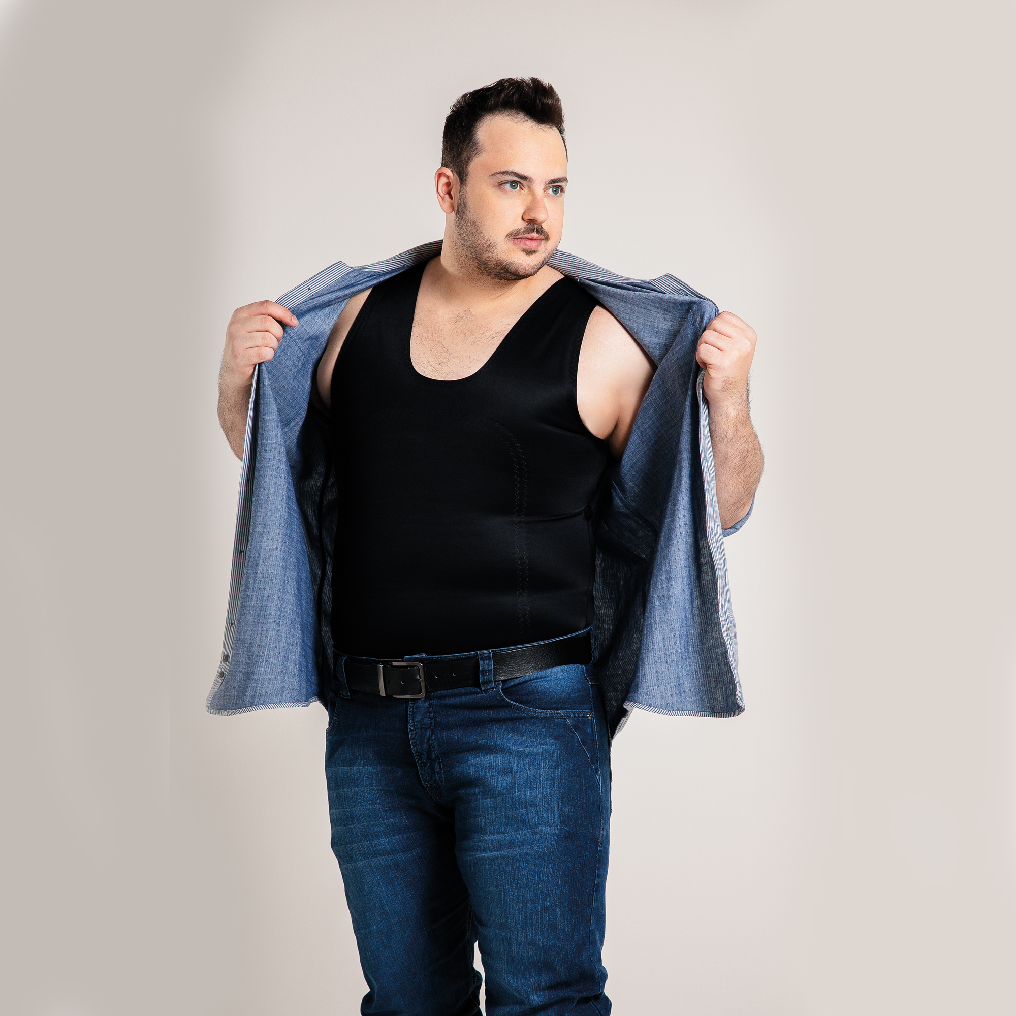 3009-TC– Camiseta masculina com reforço abdominal sem abertura frontal.